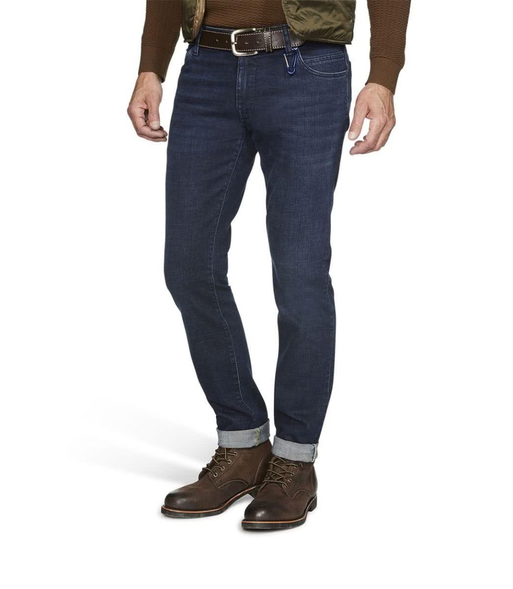Ce jean Meyer bleu est le modèle indispensable pour la saison automnale. Confectionné en coton stretch, ce jean Meyer vous apportera confort et souplesse. La coupe moderne « slim » vous garantie une belle silhouette élancée. Vous pouvez porter facilement ce jean avec une chemise, un pull, une paire de basket ou même des chaussures Chelsea.