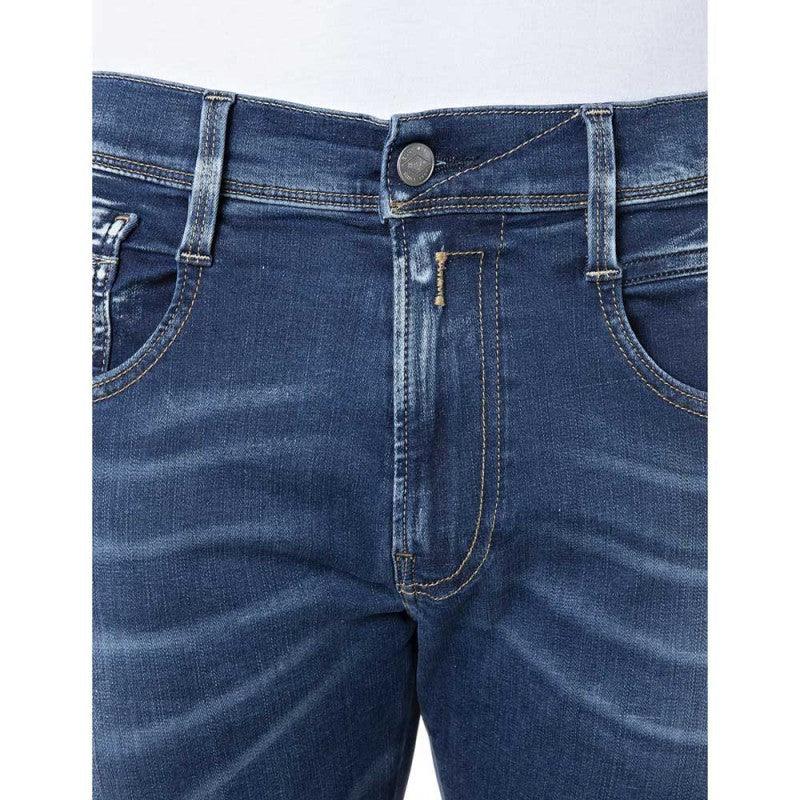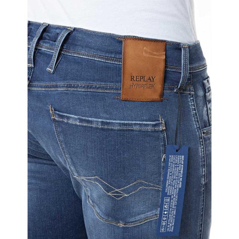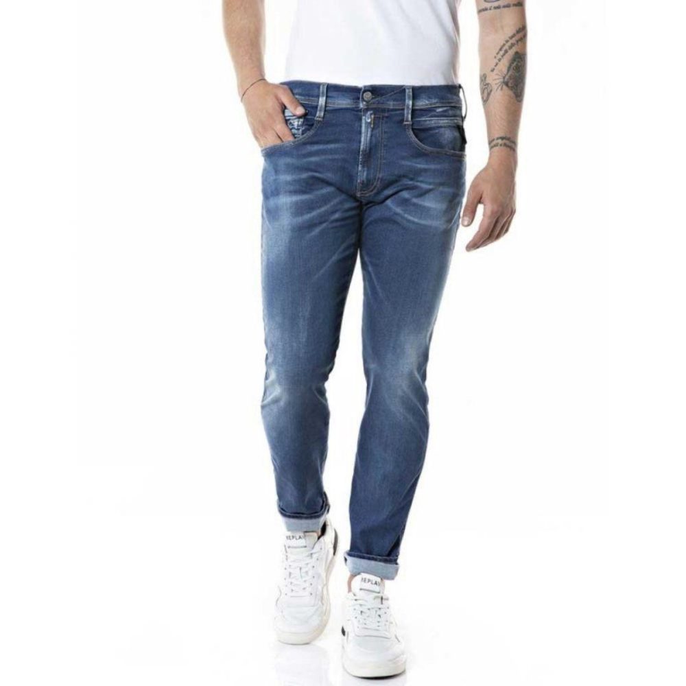 Jeans slim Hyperflex Replay bleu délave coton possède une technologie innovante qui allie le look authentique à la liberté de mouvement totale et un confort absolu.